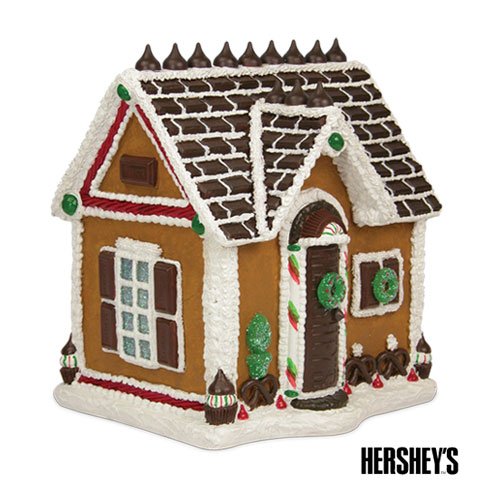 Home sweet home-this gingerbread house has been inspired by everyone's favorite chocolate, HERSHEY'S! Size: 10"W x 12.5"H x 8"D 10"W x 12.5"H x 8"D Resin
